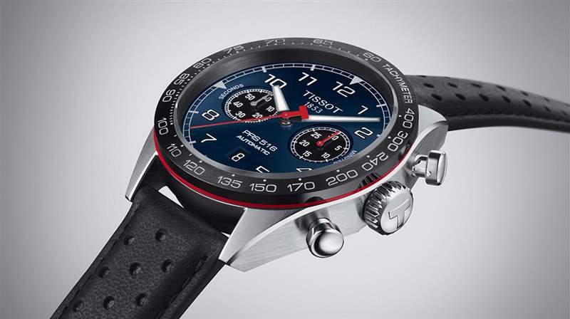 自1965年以來,天梭的PRS車型與賽車運動有著密切的聯系。該品牌作為官方計時員參與了一系列比賽,從未停止推出升級,擁有高性能,精心制作的口徑,完全符合他們的時間。因此,2022款PRS 516自動上鏈計時碼表的靈感來自這個旋轉的世界。黑色或旭日藍色表盤上的時針和分針懸停在一小時章節(jié)中,并帶有大阿拉伯數字。所有這些元素都涂有Super-LumiNova?涂層,即使在黑暗中也能確保出色的可讀性。計時是在兩個形狀像活塞的按鈕的幫助下完成的。這在直接驅動和3點鐘位置設置的30分鐘計時盤上記錄下來。9點鐘位置的小秒針完美地平衡了雙七分顯示的構圖。固定的陶瓷表圈頂部是測速刻度,突出了運動的外觀。