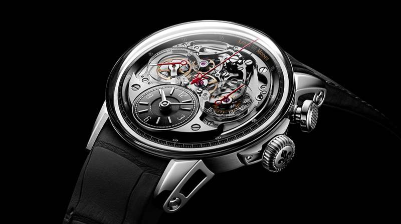 Memoris單體計時碼表是路易斯·莫奈系列的基石,直到現在才有不同的變體。它們有什么共同點?所有腕表均圍繞直徑為46毫米的表殼打造。然而,憑借這款全新的Memoris Spirit,該品牌實現了令人難以置信的壯舉:將一個復雜的機械裝置(總共約311個組件)整合到一個直徑僅為40.7毫米的表殼中,但延續(xù)了原始風格。基本上,當它們并排設置時,除了這種新穎的尺寸外,這兩款時計看起來是一樣的。臉部仍然具有相同的元素。偏心的時針和分鐘表盤仍然位于6點鐘位置。專用于測量時間段的單腳推器位于2點鐘位置。30分鐘的計數器和小秒針追求雙倍陣位。為動作提供動力的導柱輪在12點鐘位置仍然清晰可見。