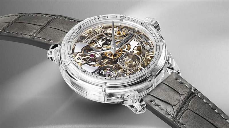 為了使色調(diào)得到充分發(fā)展,直徑42.5毫米,厚度為11.55毫米的表殼也采用剛玉晶體加工而成。這種技術(shù)解決方案實際上有助于時計的美學(xué)。兩只指針指向由半透明緞面成品材料制成的小時軌道,以裝飾標記。在2點鐘位置,一個指示器顯示腕表和音樂復(fù)雜功能的動力儲存。6點鐘位置的小秒針完成時間指示。因此,沒有表盤和藍寶石表殼,在533個組件的幫助下,L.U.C 08.01-L手動上鏈機芯的360度全景令人印象深刻。有了這樣一個開放的建筑,人們怎么能不驚嘆于錘子在運行時的敲擊聲呢?這種復(fù)雜的機芯也匯集了它的性能。除了60小時的動力儲存外,它還具有瑞士官方天文臺測試機構(gòu)(COSC)認證的精密計時功能。L.U.C Full Strike藍寶石腕表也滿足了日內(nèi)瓦一品紅的要求。