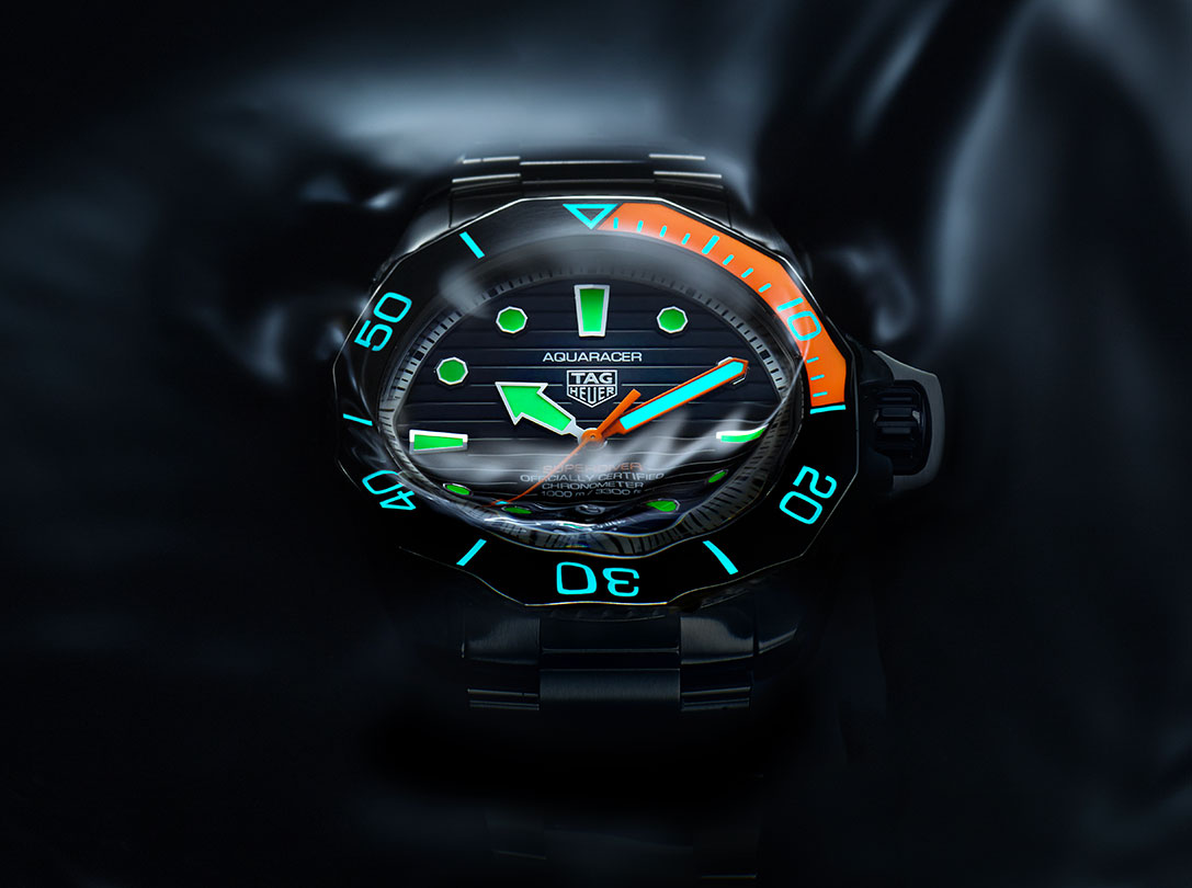 繼TAG Heuer(泰格豪雅)對其2021年潛水腕表進行更新后,該公司今年將推出專為探索深淵而設計的車身升級:Aquaracer Professional 1000 Superdiver。腕表配備精鋼表背和5級鈦金屬表殼,比Aquaracer Professional 300腕表厚度3毫米,寬45毫米。這些選項可確保腕表防水深度達 1000 米。此外,每一個細節(jié)都經(jīng)過精心考慮,以滿足ISO標準對飽和潛水腕表的要求。氦氣排放閥的存在進一步限制了上升過程中壓力的影響。此外,在由防滾桿保護的冠部,橙色印章警告是否明顯地擰入不良。所有光照條件下的易讀性也得到了優(yōu)化。綠色和藍色Super-Luminova? X1級腕表已應用于時尚表盤上的大標記、指針和單向旋轉表圈上的刻度。