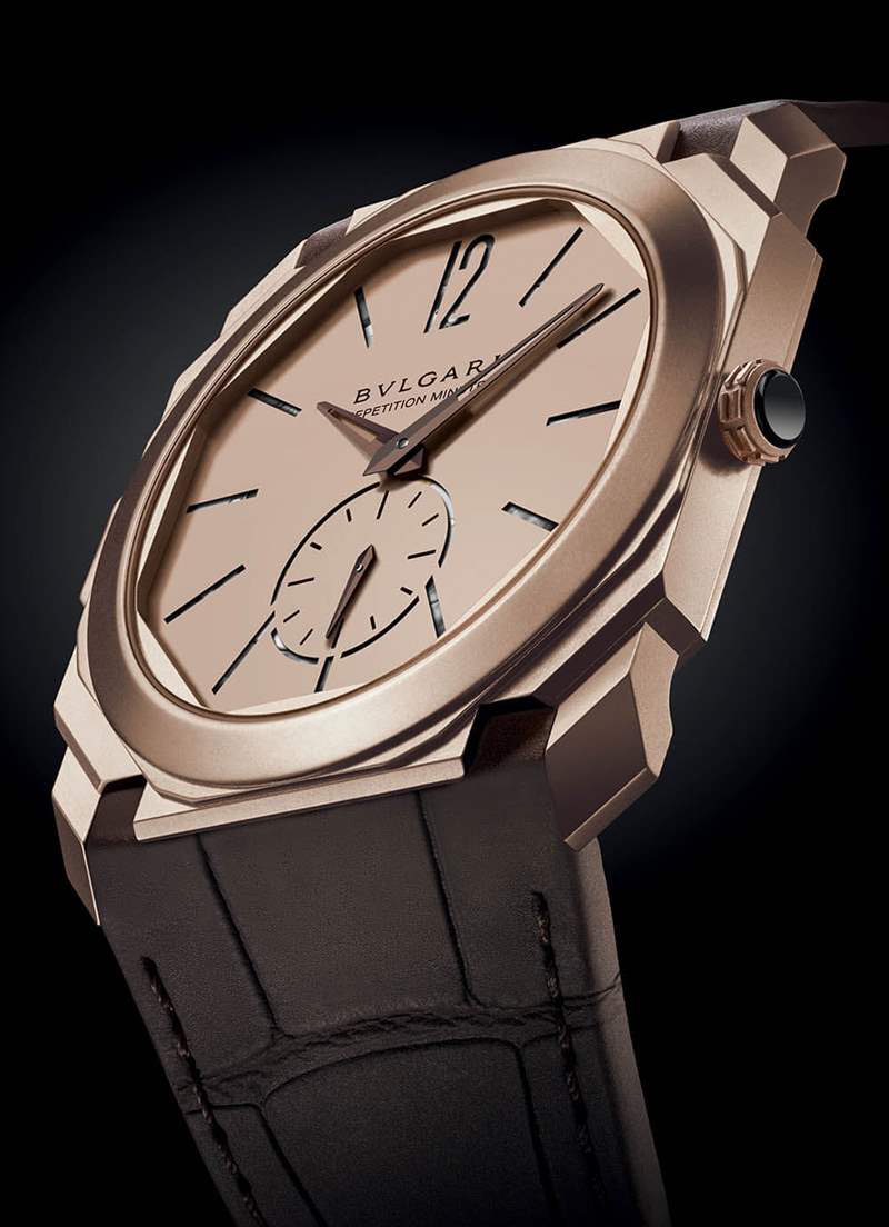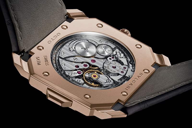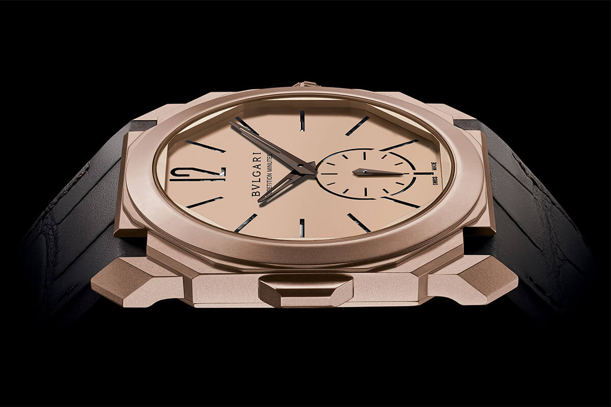 它于 2016 年首次亮相,當時它身著輕質鈦金屬,大張旗鼓。它曾經是——現在仍然是——一件非常酷的作品,完美地契合了刻面 Gerald Genta 的設計。現在,寶格麗采取了一種稍微不同的方法,并用一種??你期望在像這樣的高復雜度周圍看到的以前的金屬來提高賭注:玫瑰金。