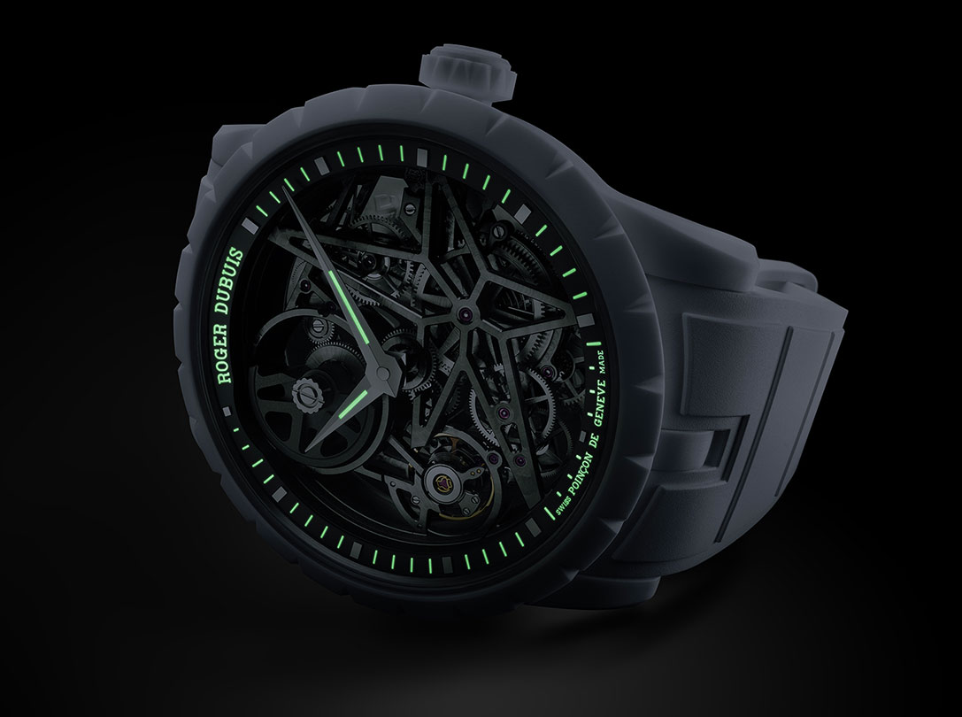 為了強調(diào)其獨特的建筑設(shè)計,這款手表配備了一個非常純凈的顏色的匹配橡膠腕帶。在黑暗中,只有時針和分針以及表圈上的刻度被其SuperLuminova?涂層照亮。這款完美無暇的表殼為RD820SQ鏤空機芯的星形橋板提供保護。這款動力儲存為60小時的自動上鏈機芯的齒輪和微型擺陀全部展示。與羅杰杜彼的所有作品一樣,這款神劍的制造和組裝也獲得了日內(nèi)瓦一品紅認證。