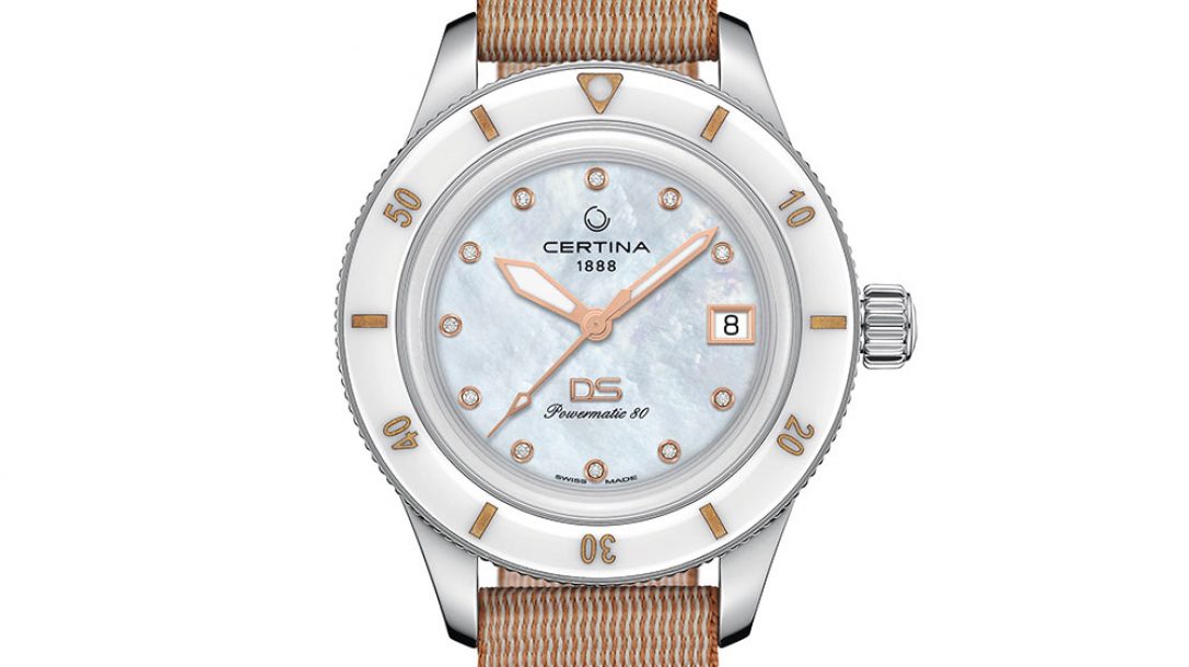 作為對(duì)這款直徑略小的精致復(fù)古裝飾的著名潛水腕表的新詮釋,這款自動(dòng)腕表的表盤和織物表帶均采用沙灘的暖色調(diào)。