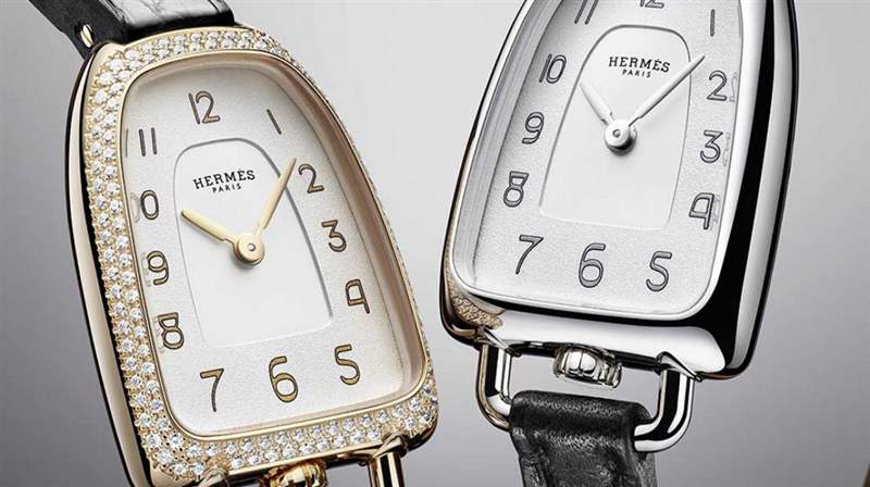 改變外觀,因為品牌是如此喜歡馬術世界!Galop d’Hermès系列于2019年推出,以縮小尺寸回歸,盡管仍然一如既往地具有吸引力。年輕的加州人Ini Archibong的設計精神,畢業于ECAL(école cantonale d’art de Lausanne),并沒有以任何方式被扭曲。因此,愛馬仕推出了他的小模組(20 x 20.7毫米)三種變體:精鋼、鑲石玫瑰金和飾有134顆鉆石的精鋼。這些極具女性氣息的腕表追求原始表盤的場景。小時章節具有高度奇異的字體和不同的尺寸,銀色或鍍金的阿拉伯粉末數字,襯托著無煙煤輪廓,在一個大的壓花空間上。帽子的尖端與馬環境,8被想象成一個翻轉的馬鐙。時辰和分鐘由一對圓形、鍍銠或4N鍍金的警棍式指針懸停。