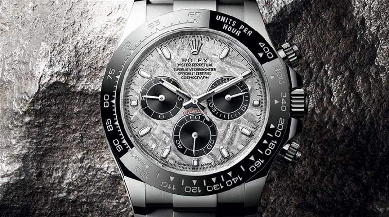 更獨(dú)特的Daytona今年展示了新的精致,因?yàn)樗捎昧苏滟F,優(yōu)雅的金屬表殼和直接從天空中心出來的表盤。